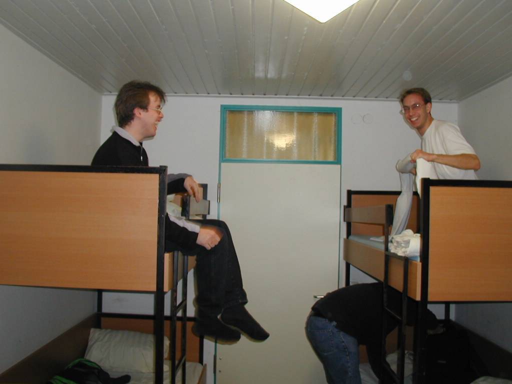 Ich mit Christian, Christina, Arne und Tanja (von links nach rechts) und Christians vollgepacktem Micra kurz vor der Abfahrt aus Dinkelscherben ...